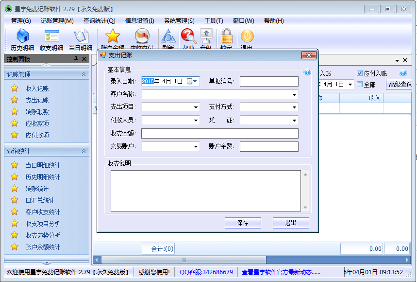 星宇免费记账软件是一款完全免费的简单财务记账软件。该软件操作简单,功能全面,除此之外它可使您工作更轻松、记帐更快捷、效益更显著。