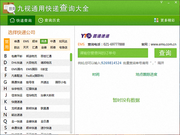九视通快递大全是一款快递查询工具,目前功能全专业的快递查询客户端软件,支持批量快递单查询,智能跟踪快递动态,让你随时随地可以查询快递动向。