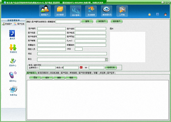 一款终身免费的客户信息管理系统,由智方软件自主研发,界面设计简洁美观,包括客户管理、添加客户、统计查询等多个功能,流程清晰,操作简单。