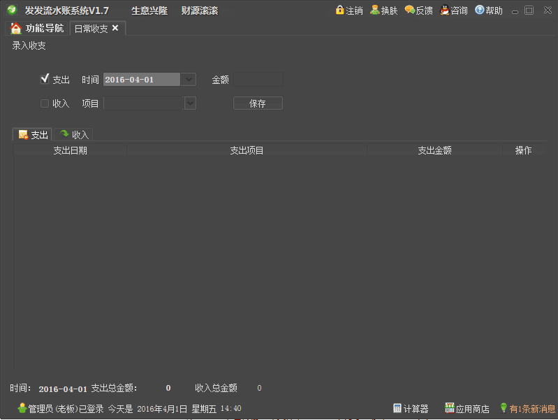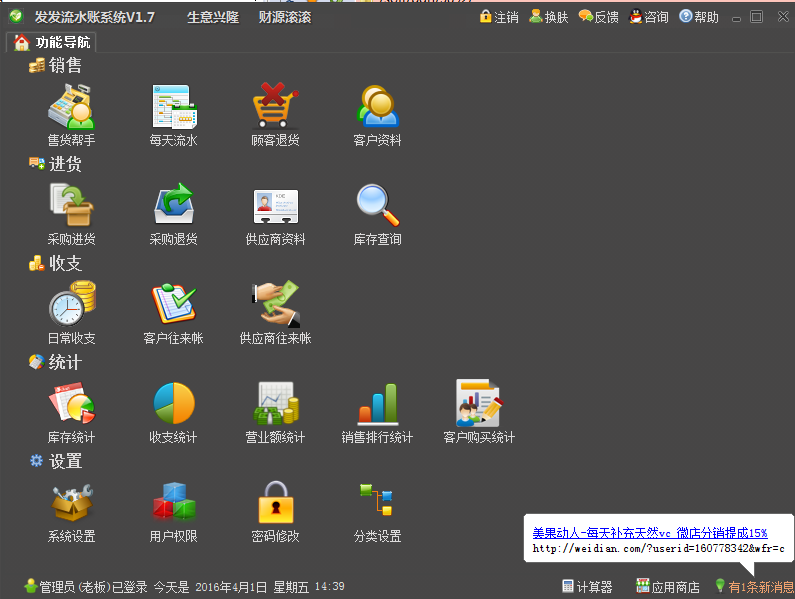发发流水记账是一款专门为个体商家量身打造的免费进销存软件。软件充分考虑用户使用习惯,简单易用、快捷、方便,无需专门培训。软件可以帮助用户分析和统计经营状况,管理账目,维护客户关系。使您轻松记账,方便管理,终让您的更多精力投放的生意经营之中。