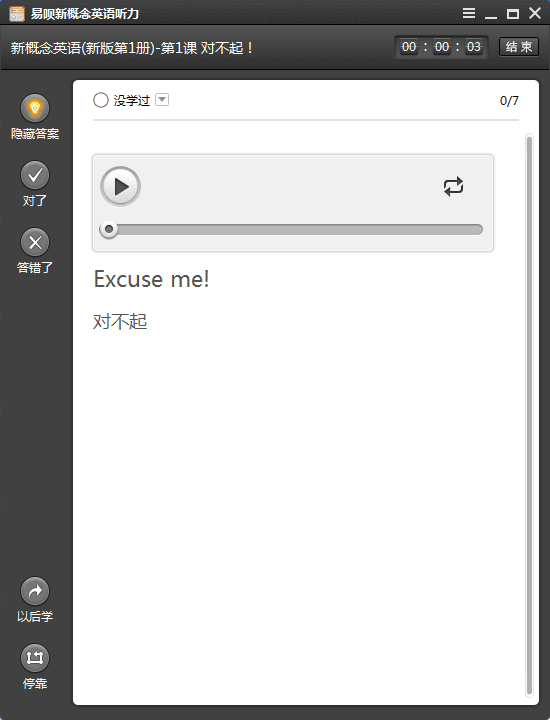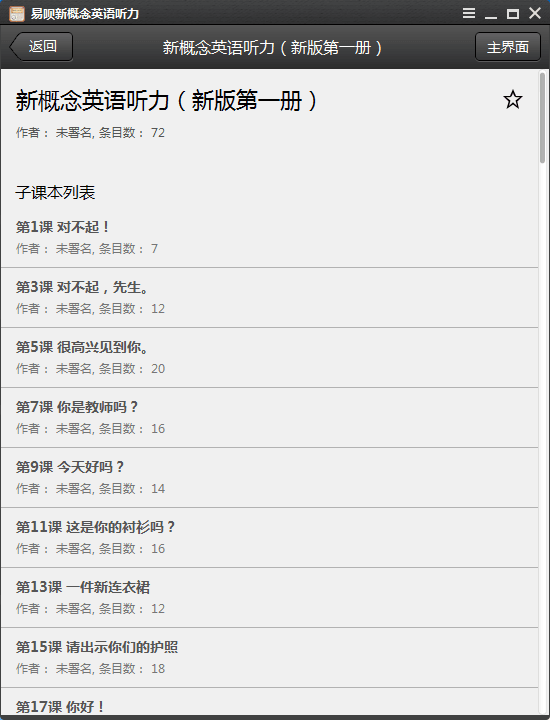易呗新概念英语听力是一款专为英语初学者设计的学习软件,依靠智能云分析和易呗记忆来给用户提供智能学习方案,同时内置了易呗词典和新概念英语词汇,让用户听力、单词学习两不误。