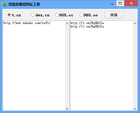 深蓝批量短网址是一款体积非常小巧的短网址生成器,软件下载即可运行,能一键生成多个短网址,并且永久有效。有了短网址用户就能快速的分享自己喜欢的资源和链接,而且不用再担心被系统kill掉。