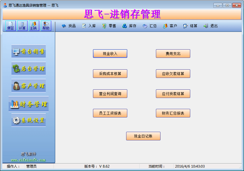 思飞通达渔具店销售管理软件是一款简便,易用的渔具店销售管理软件。该软件可以功能全面,它能进行数据备份,恢复管理。