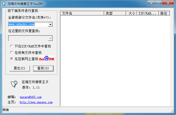 压缩文件搜索王子是一款压缩文件搜索器,不仅支持在您的电脑上查找本地文件,也可以在互联网中查找您所需要的文件,只要输入文件名即可。