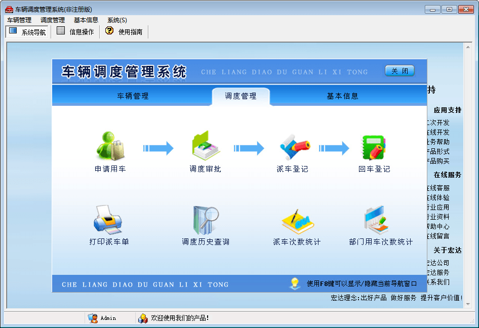 宏达车辆调度管理系统是一款针对企业车队调度进行更科学、更高效的管理而开发设计的一套管理软件。该软件界面美观、功能全面,能提高工作人员的工作效率。