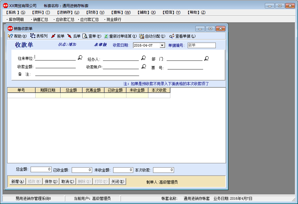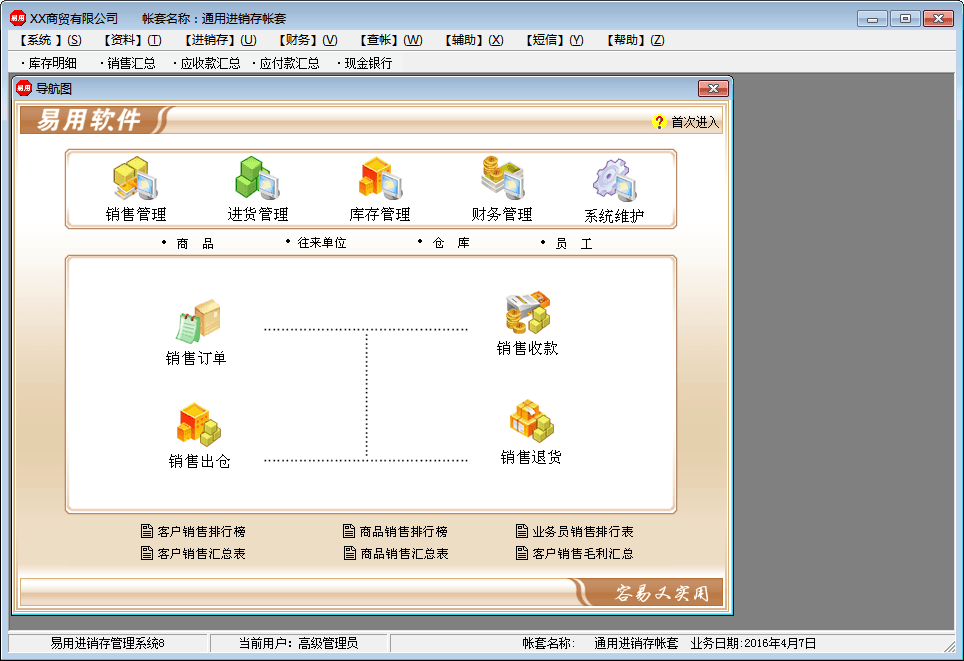 易用进销存管理软件是一款适合中小批发零售企业进销存业务管理软件。该软界面简洁、操作简单,是您商贸管理的好助手。