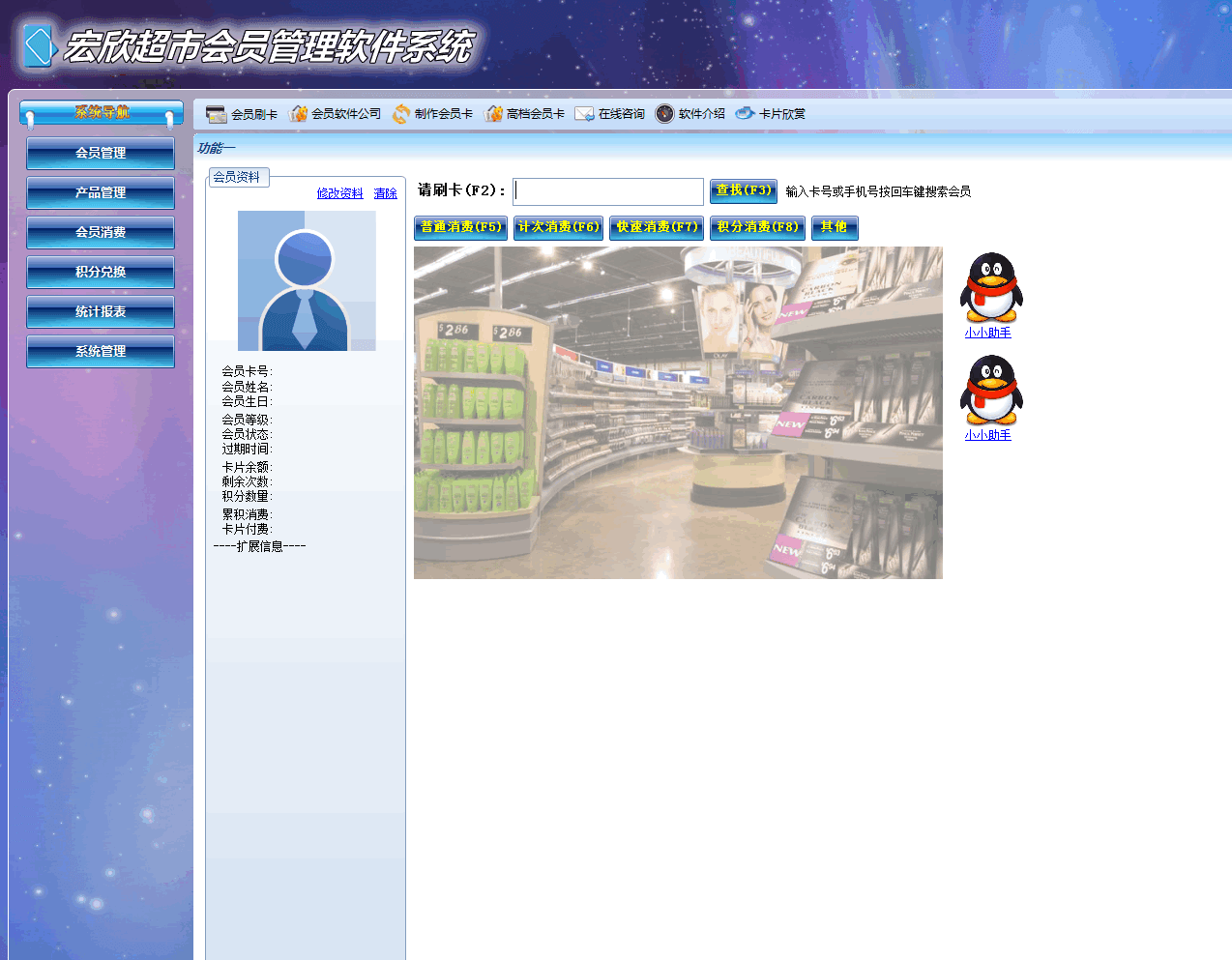 宏欣超市会员管理软件是一款专为中小型超市所准备的会员管理软件。软件支持为每位客户设置会员档案,支持自定义优惠方式,可轻松实现会员生日提醒、库存报警等功能,支持短信群发功能,大大节省简化您的日常管理操作。