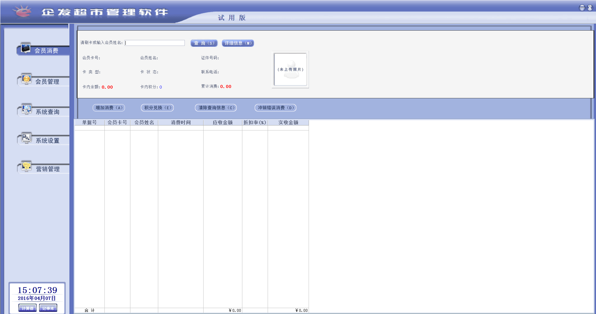 企发超市管理软件是一款专为中小型超市、便利店、专卖店等行业量身定制的进销存管理软件。软件支持会员管理\商品管理\房间管理\库存管理\权限管理\短信群发,支持会员卡、代金券、现金、信用卡、支票等多种消费模式,欢迎下载试用!