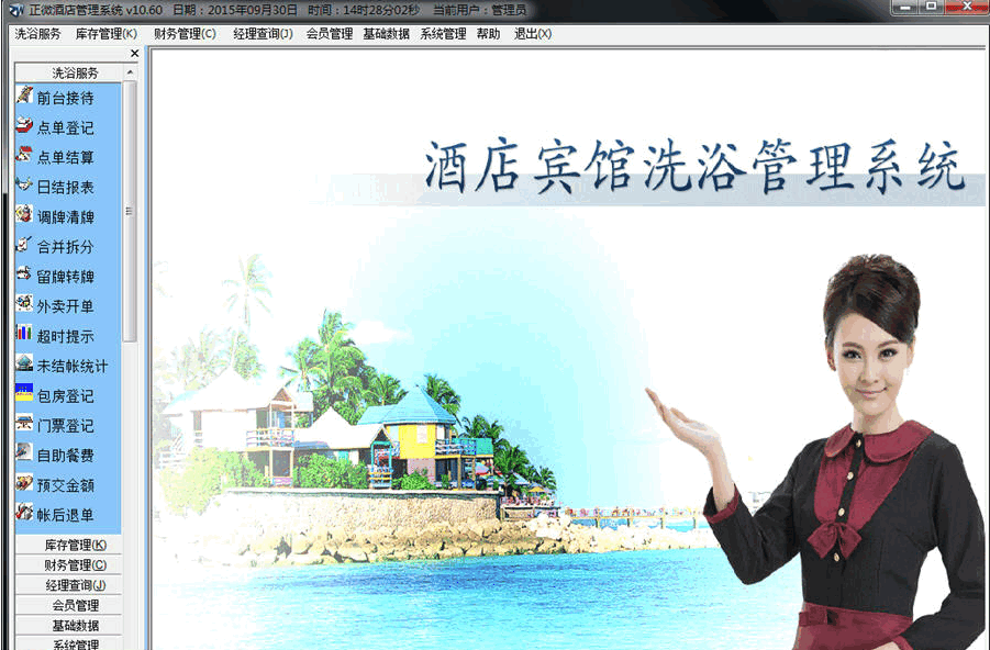 正微洗浴浴场管理软件是一款专门为洗浴娱乐业量身定制的软件。软件客人帐单号,所有押金和消费都随帐单号记录,有效控制跑漏单现象,提高了管理质量。软件同时可为多名操作设置登录口令和使用权限,欢迎下载试用!