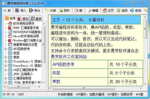勇芳编程资料库是一款专门为需要学习软件编程的编程学习资料库软件,该软件里包括了大量经过实际运用之后得到大家公认的能高效迅速的学好软件编程等相关内容的学习,对于新入门学习编程还是相对编程又更高层次的提升的朋友都可以下载这款资料库,一定偶遇您需要的东西。