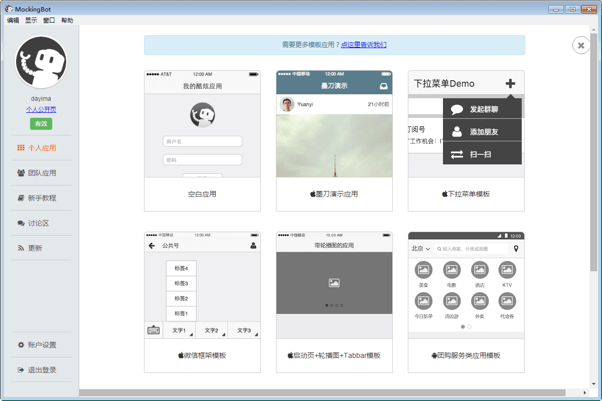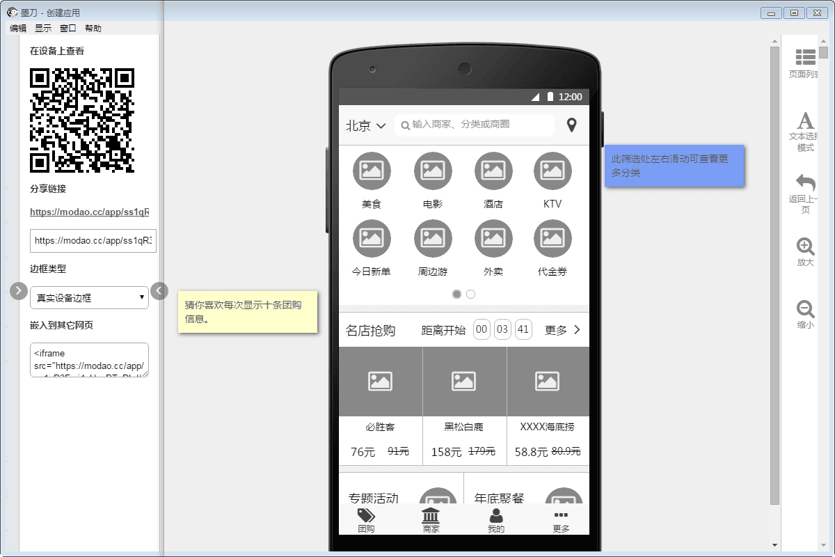 墨刀是用于手机app原型设计的工具,软件可以在电脑上快速构建移动应用原型与线框图,并且支持云端保存,实时手机预览,软件界面清新,功能实用,是一款不错的APP原型设计工具。