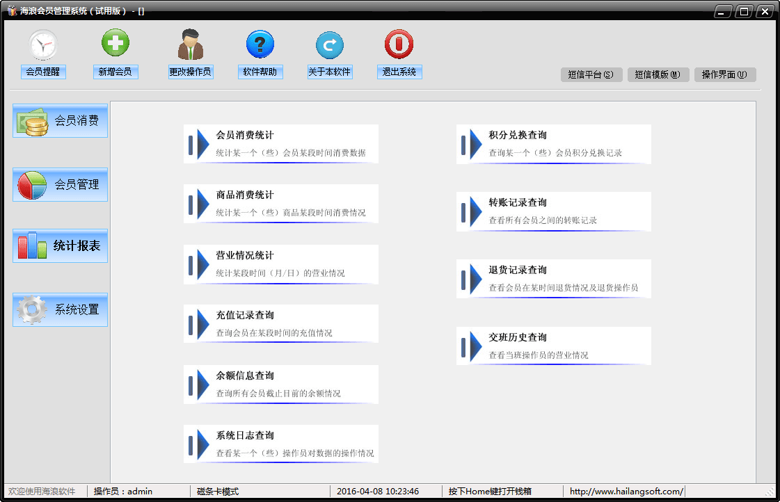 海浪会员管理系统是一款专业为商家打造的会员管理系统。该软件不仅可设置事件自动提醒,还支持系统自动备份功能,是商家管理的佳选择。