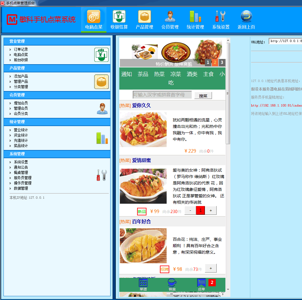 敏科手机点菜系统是一款餐厅手机点菜软件。软件具有收银结算的功能,可以记录下来怎样收款的,资金的流动方向;可以统计报表,并且打印下来交给领导;具有会员管理的功能;后厨小票自动打印功能等等,简单实用,值得期待!
