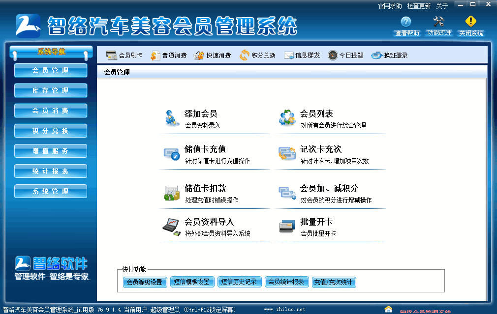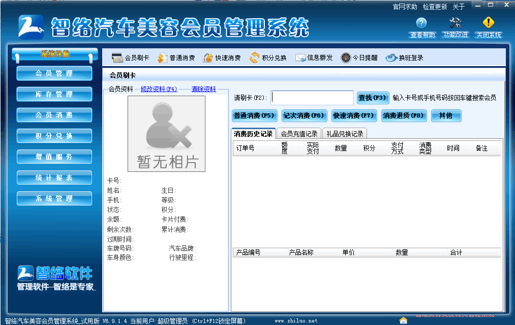 智络汽车美容会员管理系统是一款功能强大的汽车行业会员管理系统。软件简单易用,提倡软件操作方便以管理“实用性”为设计宗旨。严格按照汽车美容行业岗位评定原则来确定软件功能,通过软件可以精确的查询商品进出库明细,准确登记每一笔收入与支出,欢迎下载试用!
