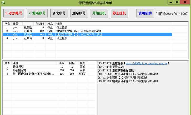 思民远程培训挂机助手是一款专门用于网上在线挂机学习的软件,很多需要考证或者公务员在进修时都是需要学习这类必修课程的,很多情况下这些知识都会,但又不想浪费时间在这,有了这款软件之后就能把您自动挂机学习,帮您把课程积分修满。