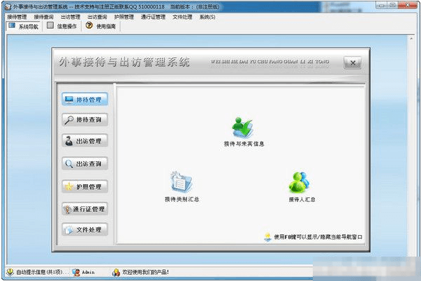 外事接待与出访管理系统是一款专门用于企业单位或者国家的外事管理系统,这款软件不仅适合国家外事工作人员使用,还可以用于需要对外出口贸易的企业使用。以往的来访客户都是用手工填写的,时间久了就会不便于管理,而且很容易遗失,有了这款软件就能大大方便您的出行和管理。