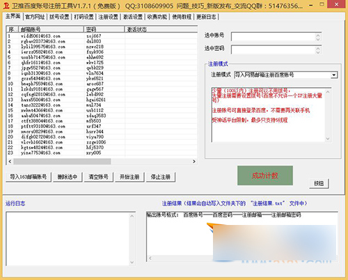 卫推百度账号注册机工具是一款专门用于百度账号的批量注册软件,自从2015年百度账号注册需要强制手机绑定实名制以后,注册账号就非常麻烦了。普通玩家还好,毕竟只需要一个账号就可以了。但是对于从事百度推广营销的工作人员就非常苦恼了,不过有了这款软件之后就能帮你批量注册账号。