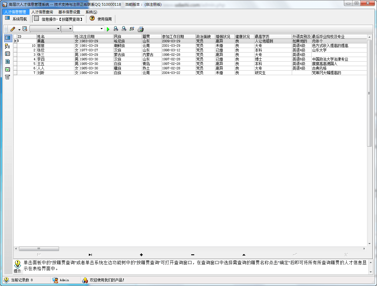 高层次人才信息管理系统是一款用来管理人才资料的系统,软件适用于各县市企事业单位;软件支持人才信息管理、人才信息查询和基本信息设置等功能。