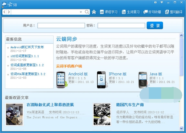 云词词典是一款优秀的英语翻译词典,该软件拥有课程学习、生词复习、好句收藏、整句翻译等功能,支持键盘输入、摄像头取词以及语音识别等多种查词方式。配合云端词库,能为用户提供词条的基本解释、释义图片、中英双解、近义词、形近词、例句、词根词缀、常用词组以及常见搭配等各种内容,功能非常强大!