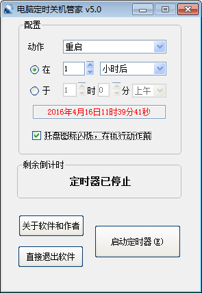 电脑定时关机管家是一款实用的定时关机软件,该软件小巧不占内存,功能却十分强大,可以设置好时间后,选择执行关机、重启、注销、休眠、冬眠功能,还可以启动定时器,随时看到任务执行的剩余时间。