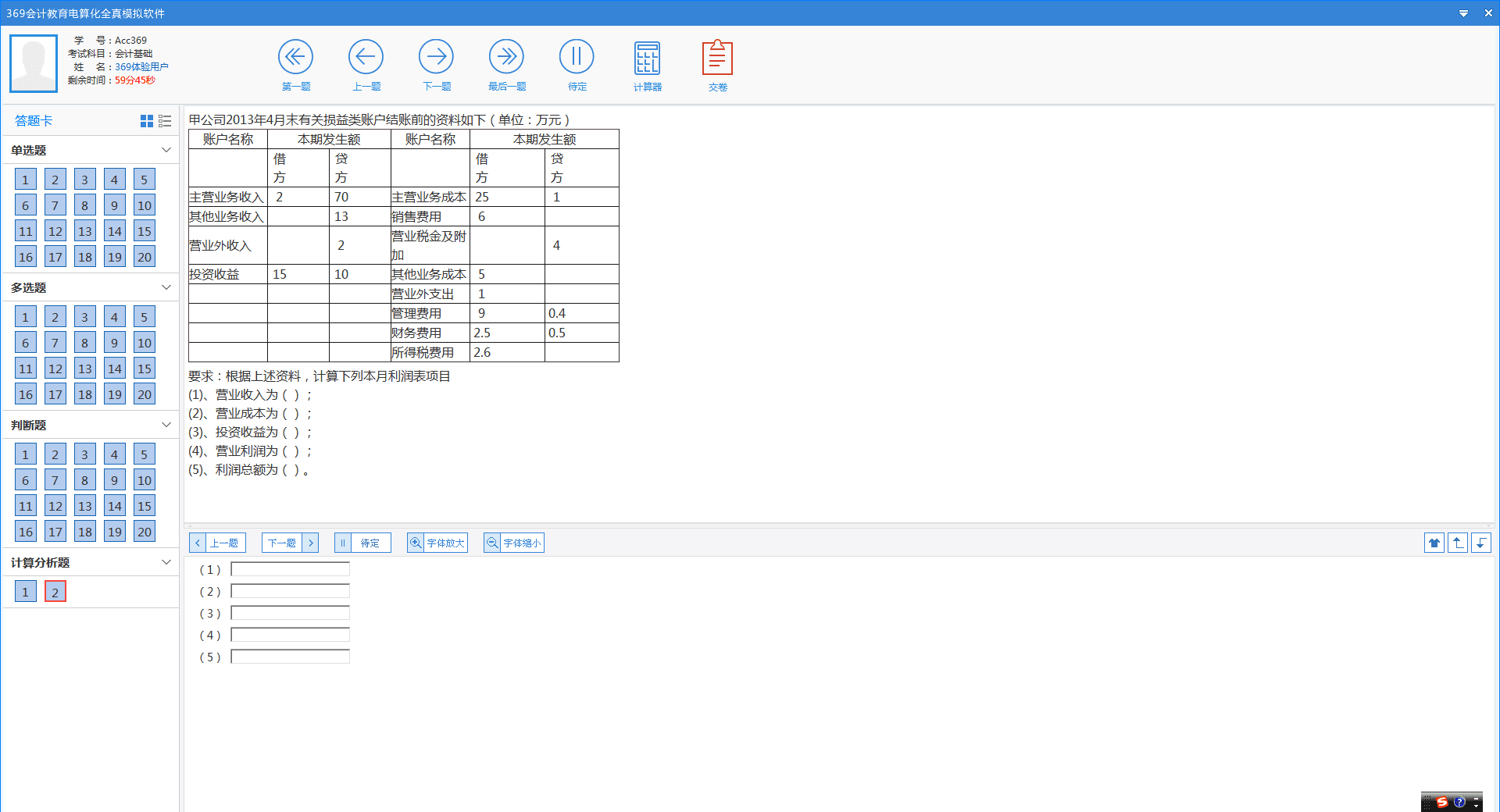 369会计教育考试模拟软件是一款会计从业职格考试的全真模拟软件,是会计考证神器,涵盖会计从业、初级职称等考证种类,打开即可做题。根据新考试大纲新编题库,列出答案与详细解析。四大做题模块,满足不同的学习习惯,拥有科目能力评估,还有更有能力提升功能!