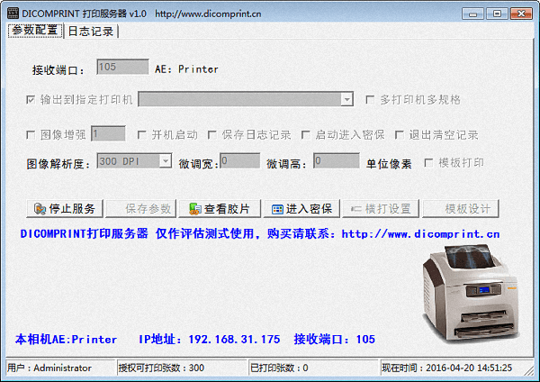 DicomPrintScp是一款功能全面丰富的胶片打印服务软件,智能自动化操作,无需人为后台操作,既节约了时间,也节约了成本,其工作原理就是配合专业的打印机,将Dicom设备打印的影像文件打印到纸介质上,方便快捷。