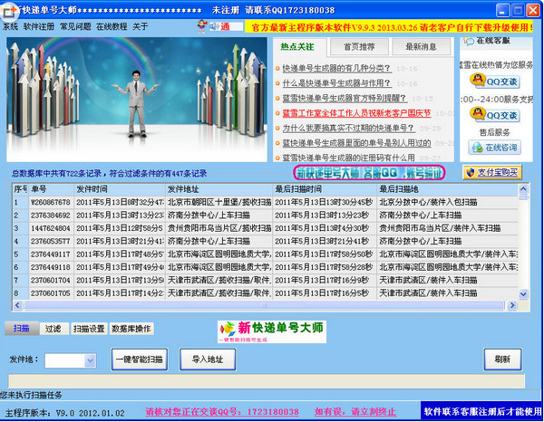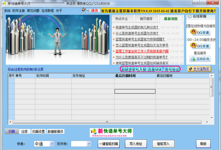 新快递单号大师是一款专门用于快递单号扫描查询的工具,这款软件的功能非常强大,而且操作简单方便,只需要一键扫描就可以生成包括当天的近期快递单号,该软件非常适合从事快递行业的工作人员,快递送货员或者快递服务中心都是非常适合使用的。