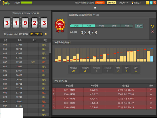金种子天津时时彩是一款专门用于天津时时彩彩票走势预测系统,现在喜欢玩彩票的人非常多,玩时时彩的人也是非常多,往往买彩票的人,中彩票的人却很少听说,不能让买彩票的就这样打水漂。这款软件就能非常好的帮您预测彩票走势,让您离中奖越来越近。