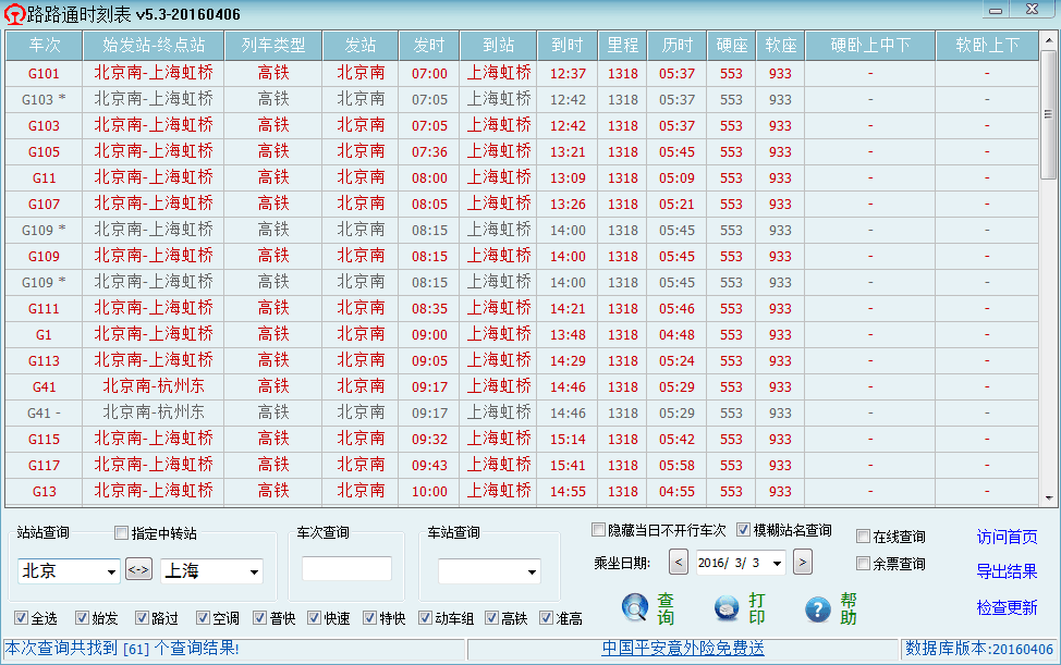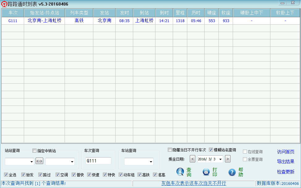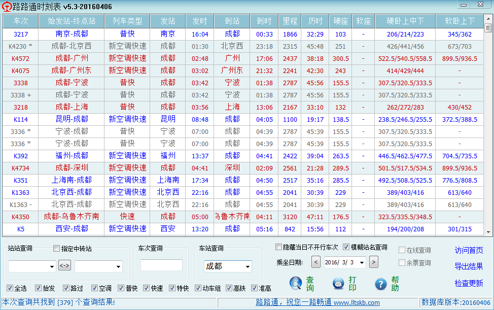 路路通时刻表是一款针对电脑平台开发的时刻表,可以查询任意车站和车次的信息。同时兼顾PC和手机2个平台,具有数据准确、软件小、功能全、完全免费、更新及时、操作简单等特色。是查询时刻的必备软件,您出行旅游的好帮手!