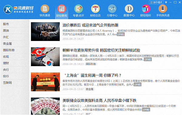 快讯通是一款功能全面丰富的财经快讯平台软件,软件包括实时快讯、财经要闻、实时行情、财经日历、专家点评、财经视听、数据中心和投资学堂8个特色模块,帮助您快速准确的了解新的实时财经消息,方便快捷。
