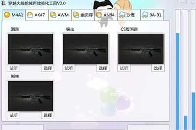 CF穿越火线枪械声音美化工具是一款专门用于穿越火线游戏的声音修改工具,长期玩穿越火线的玩家可能觉得游戏本身的声音特效不好听或者听腻了了,这款软件就可以让您对游戏里面的声音进行随意更改,人物和枪械的声音都可以改变。