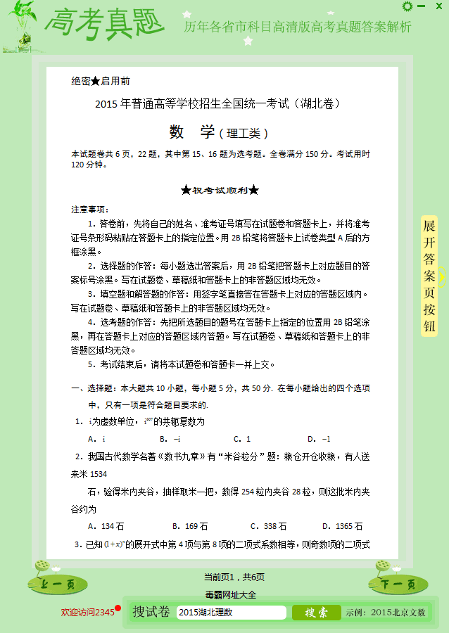 高考真题是一款收集了全国各地高考试题的软件,该软件能够有效帮助高考生复习备考。软件界面设计非常人性化,页面就像一张考试试卷,左侧是题目,右侧是答案及详细的解答过程,点击按钮即可关闭答案页面。