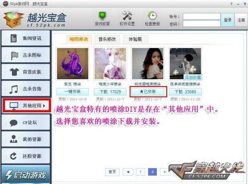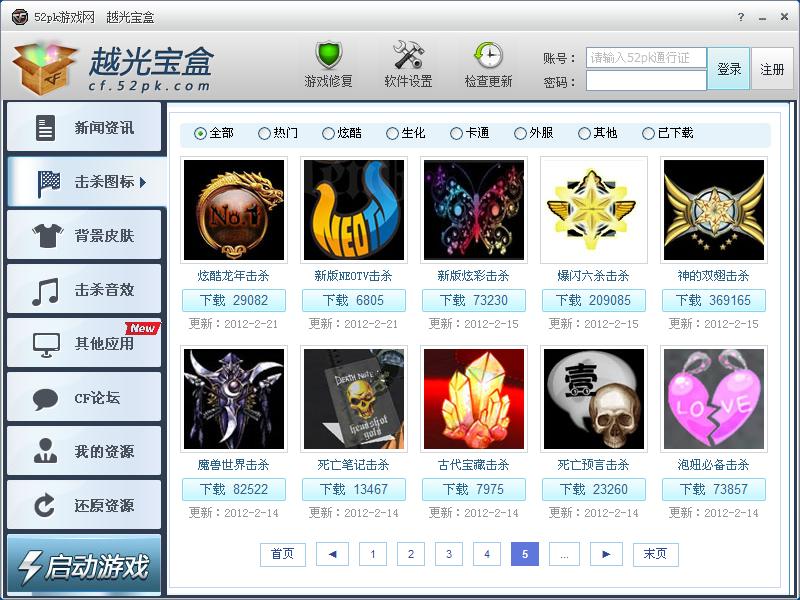 cf越光宝盒是一款可以改变穿越火线游戏里面的音效、皮肤等功能的DIY工具,玩了这么多年穿越火线听到的声音永远都是一成不变的,这款软件可以让您感受不一样的穿越火线,该软件里可以改变CF里的音效和皮肤、图标等功能,绝对是不一样的体验。