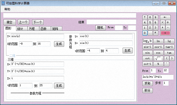 可绘图科学计算器是一款精巧实用的函数计算器软件,功能十分强大,除了具备传统计算器的基本计算功能志气,还支持图形绘制、结果表格制作等功能,能够依据用户输入的公式绘制二维、三维图形,欢迎下载使用。